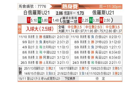[国际友] 白俄罗斯U21vs俄罗斯U21