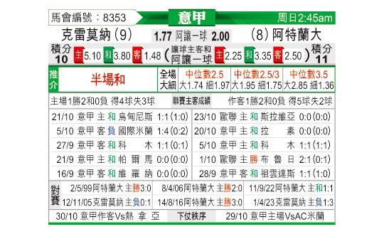 [意甲] 克雷莫纳vs亚特兰大